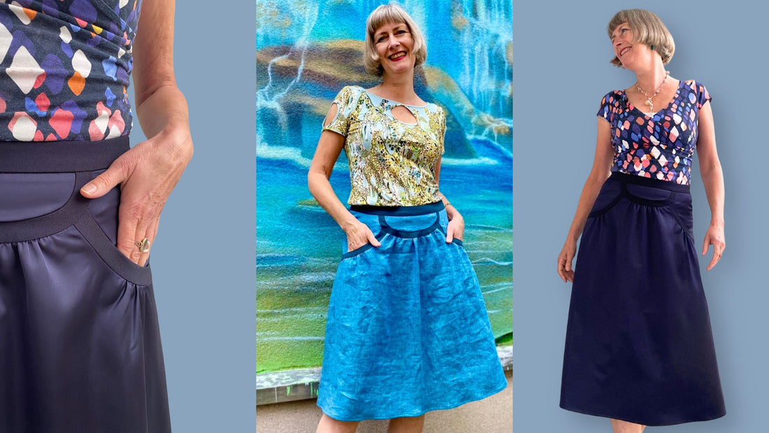 Für das Nähen dieses Rocks benötigst du eine Nähmaschine und eine Overlock-Nähmaschine, alternativ dazu den Zickzack-Stich deiner Nähmaschine zum Versäubern der Schnittkanten.