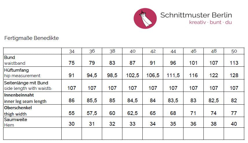 Der Hosenreißverschluss mit Bundknopf und die langen, schmalen Beine geben der Hose ihre klassische Linie. Ob du sie mit sportlichen Kontrastnähten nähst oder lieber schlicht und clean – Benedikte lässt sich vielseitig interpretieren und passt sich deinem Stil mühelos an.