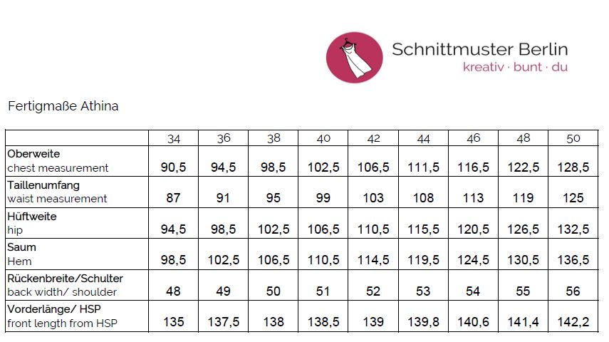 Athina ist ein Kleid für den großen Auftritt. Mit den weiten Ärmeln, den hohen Seitenschlitzen und dem breiten Bindeband inspiriert es von Griechenland bis nach Japan. Die Ausschnittkanten und der Armsaum werden mit Belegen versäubert. Durch die bequeme Weite ist kein Reißverschluss nötig.