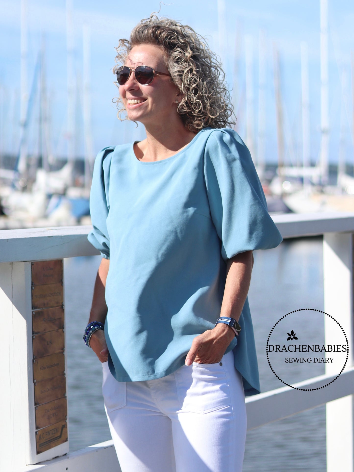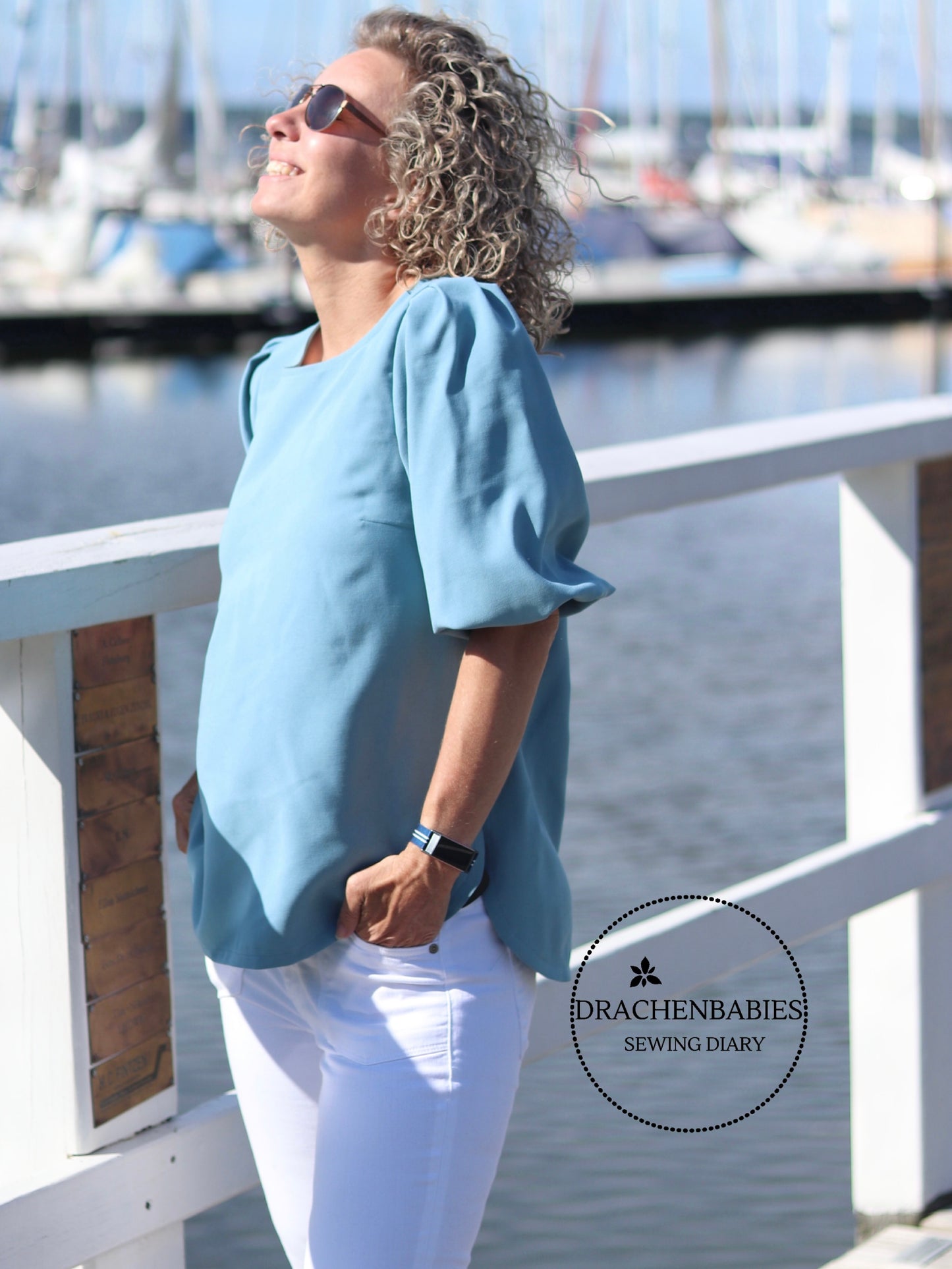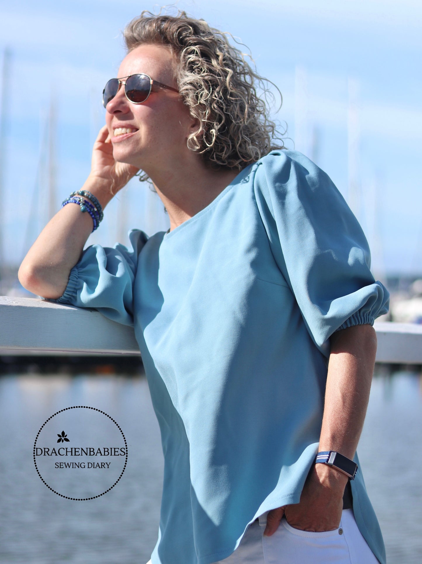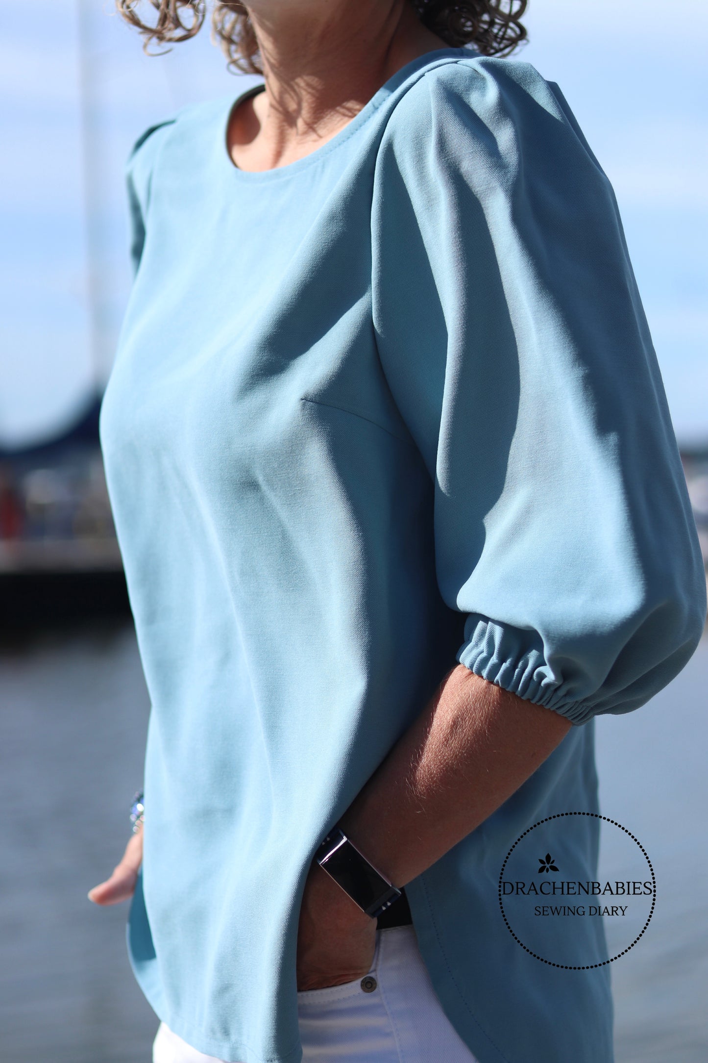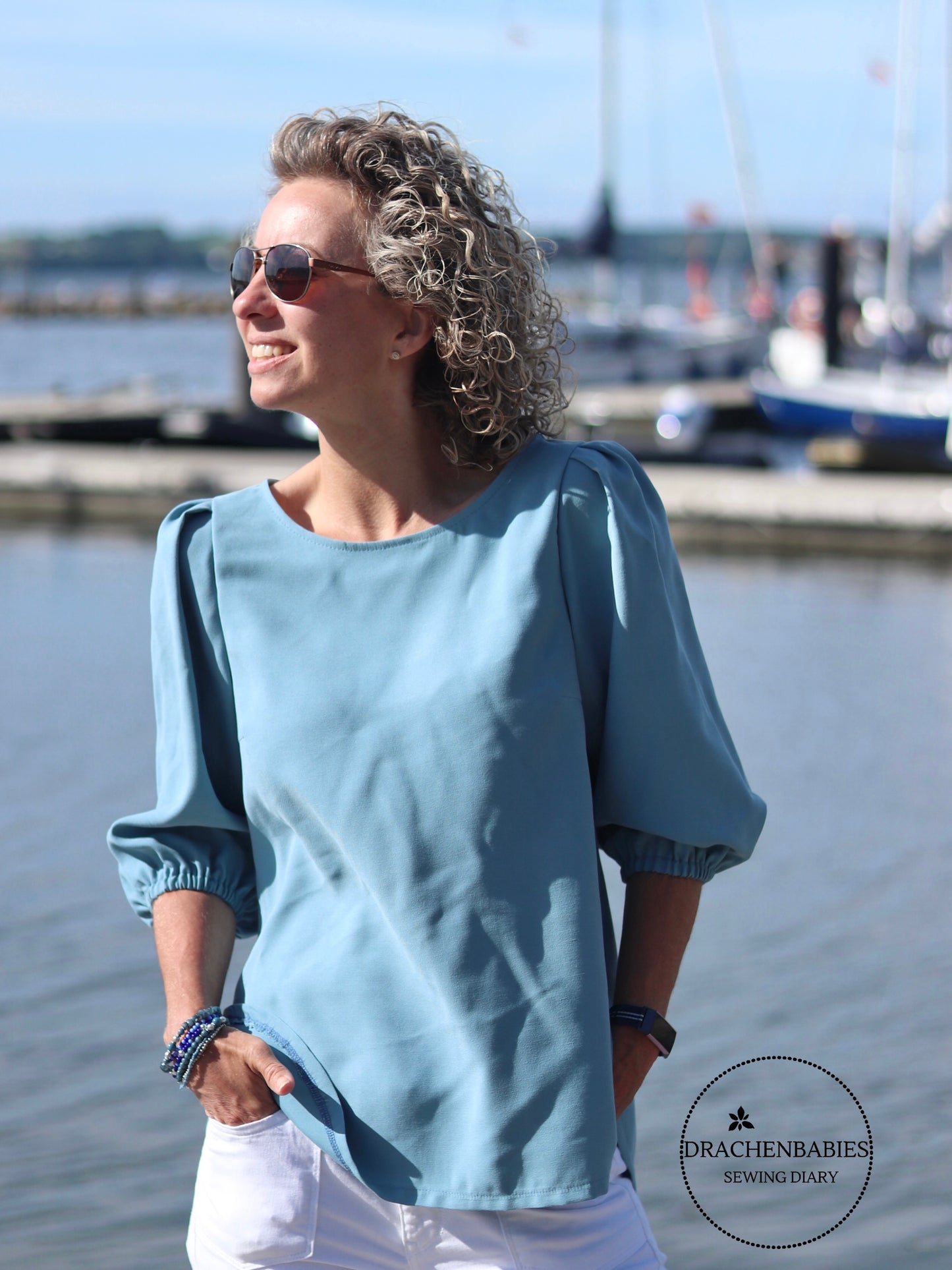 Die Bluse Svenja ist ein sehr schönes Blusen-Schnittmuster. Dank der prima Anleitung ist das Nacharbeiten easy.