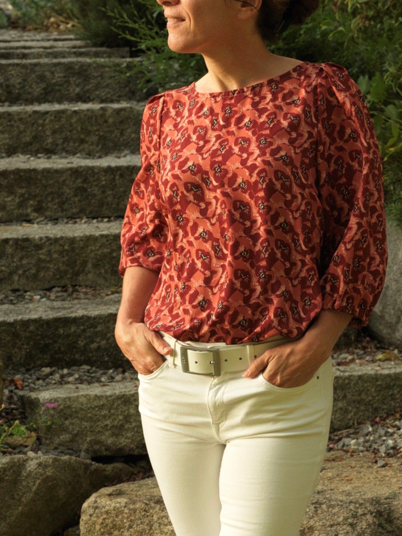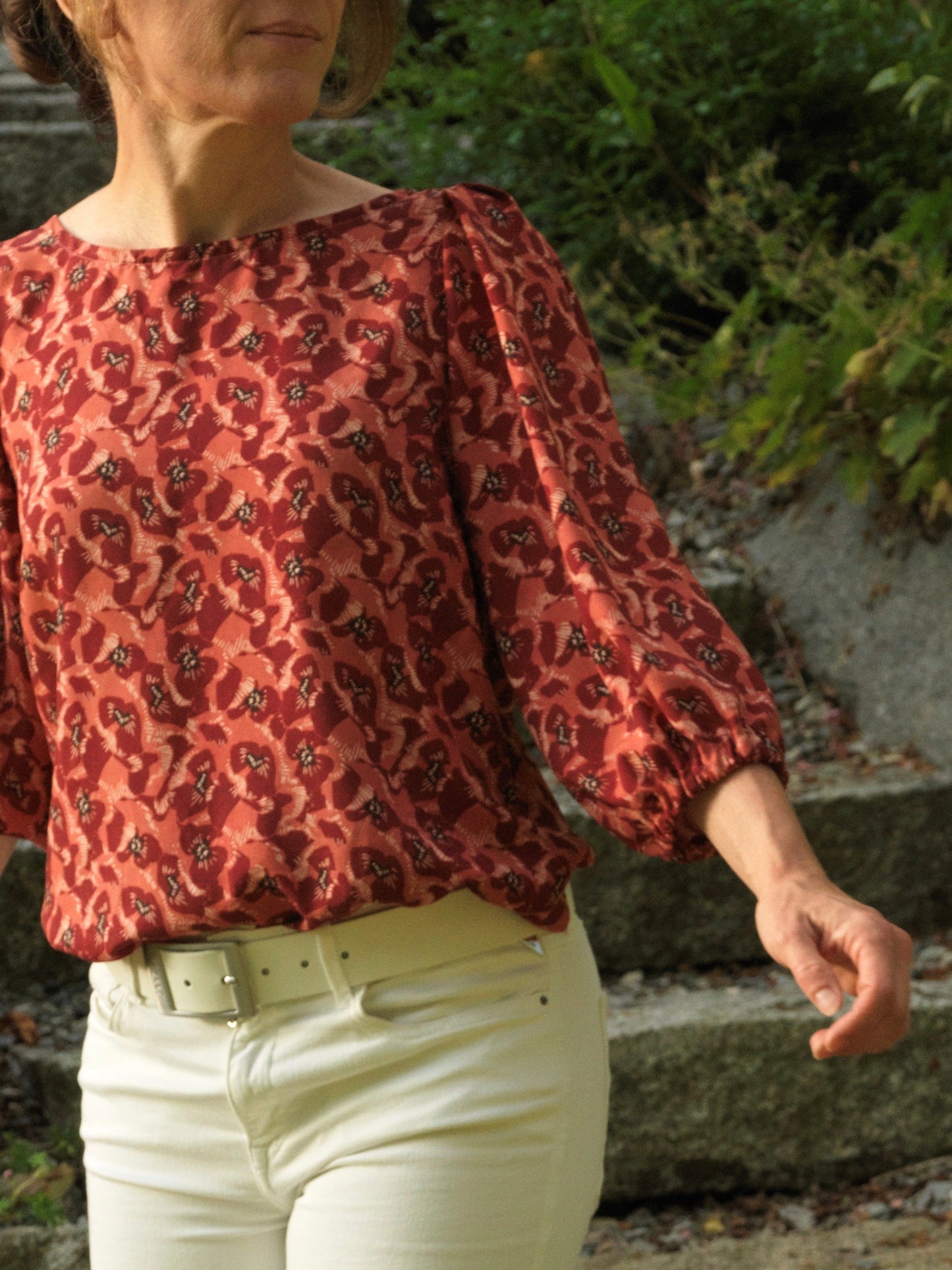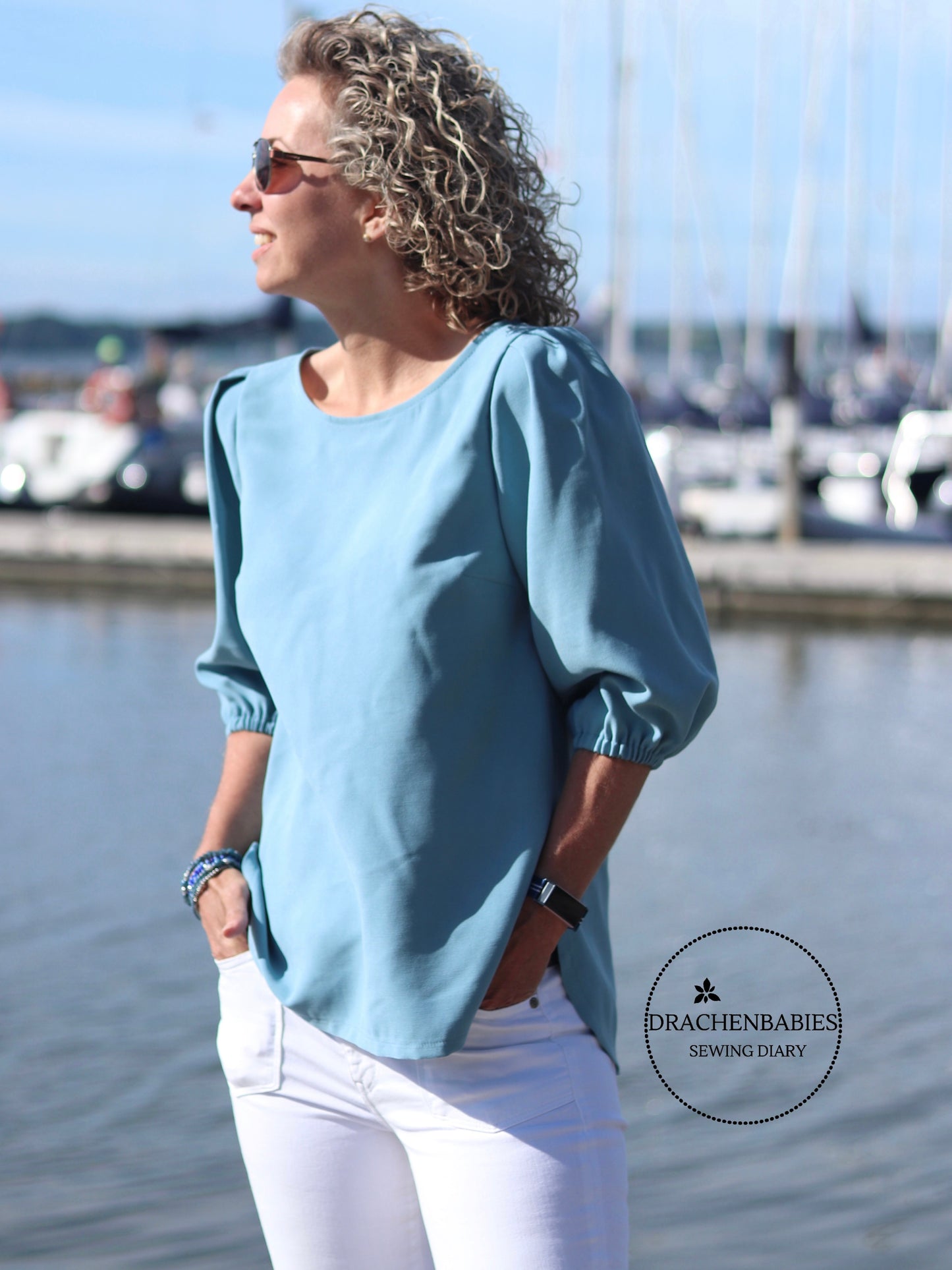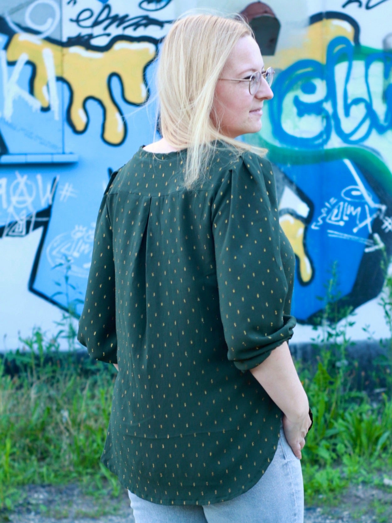 Die Bluse Svenja ist ein sehr schönes Blusen-Schnittmuster. Dank der prima Anleitung ist das Nacharbeiten easy.