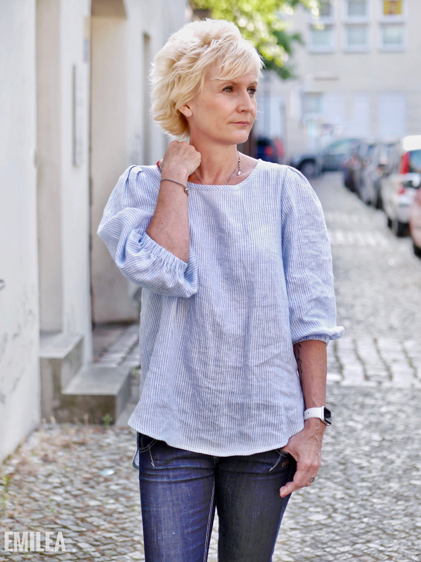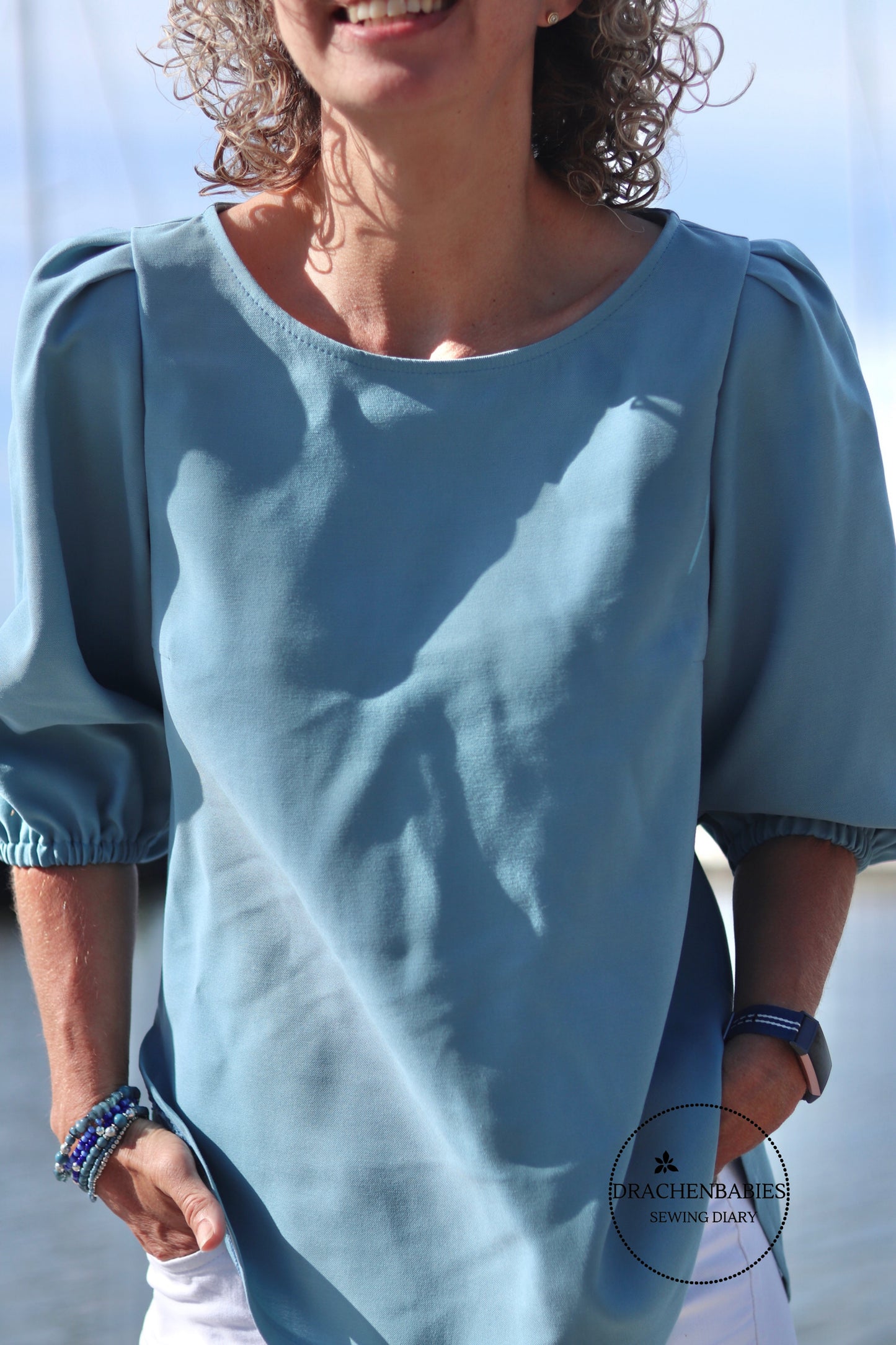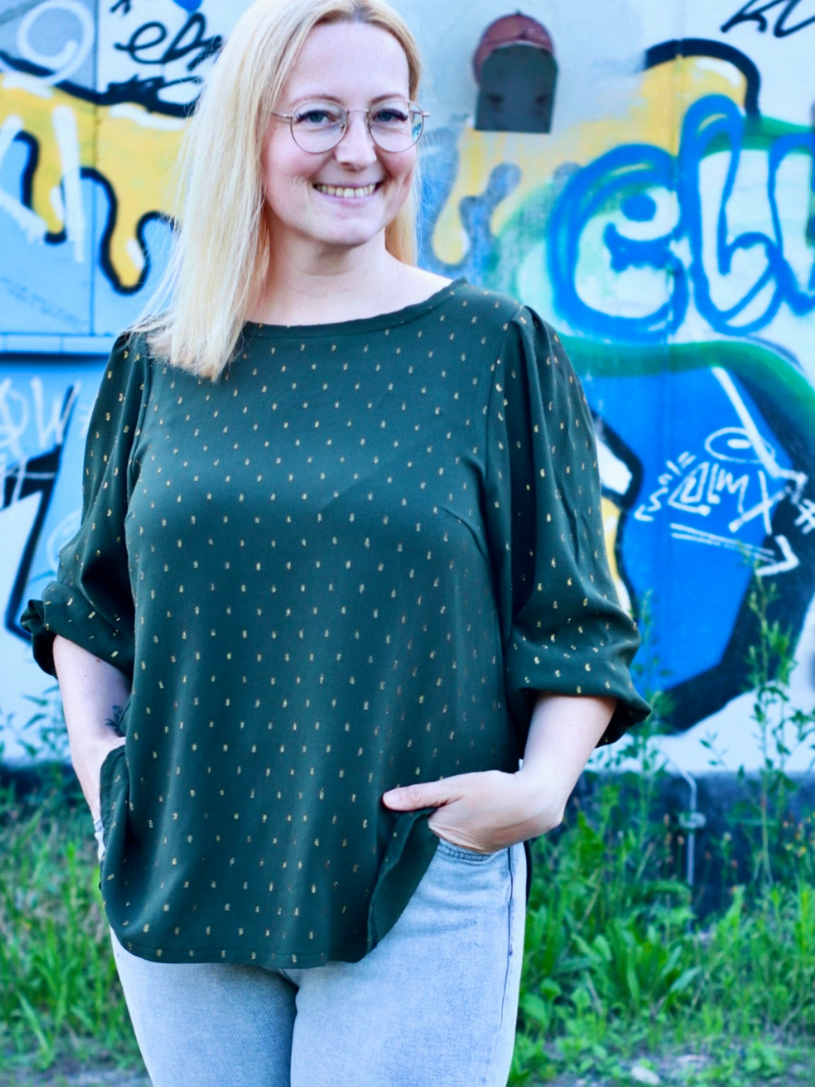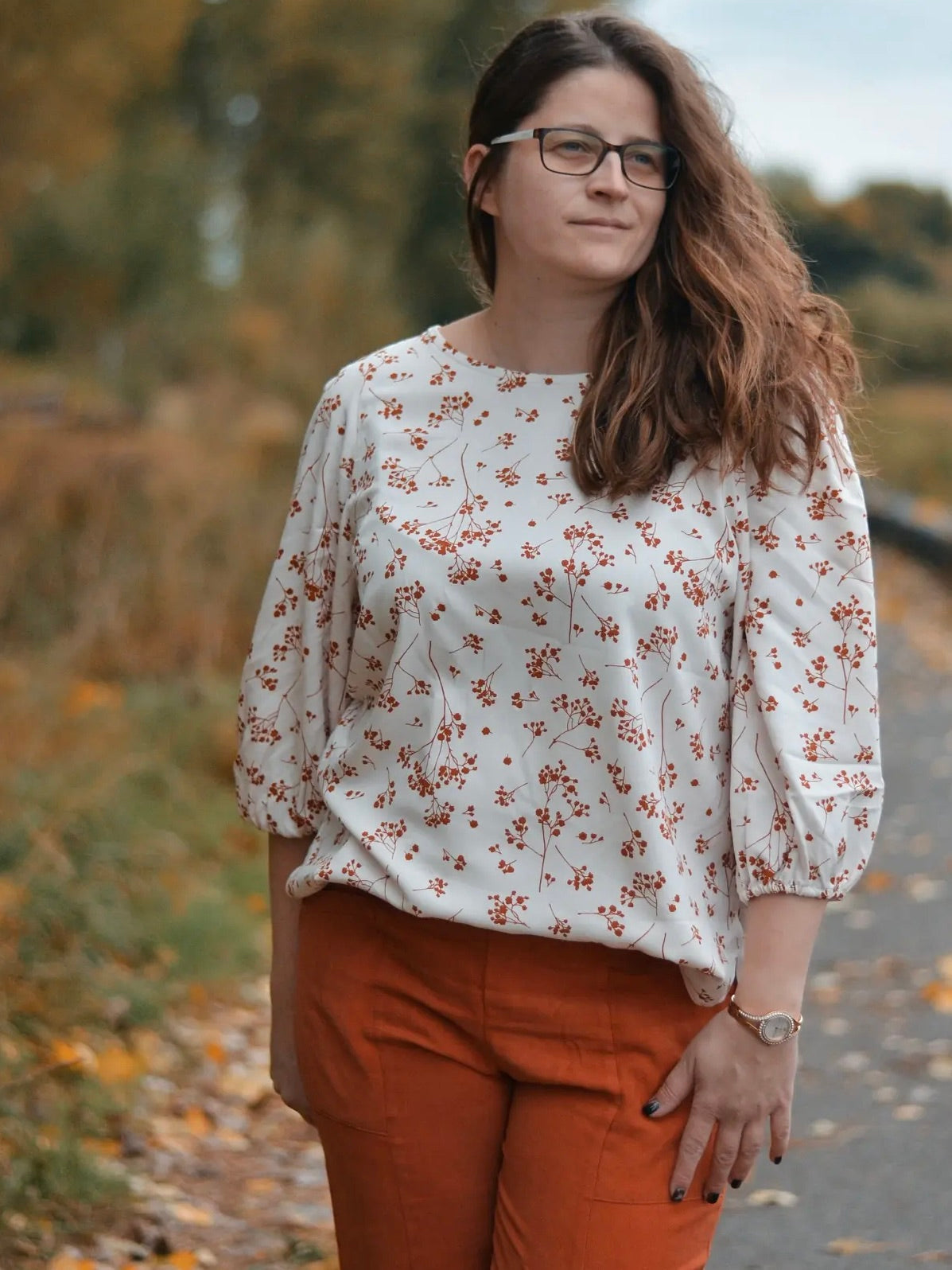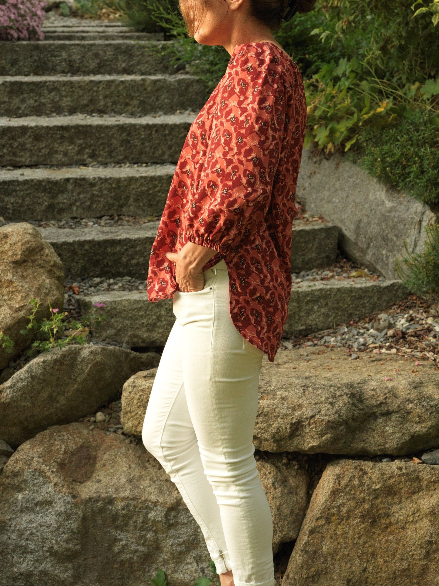 Die Bluse Svenja ist ein sehr schönes Blusen-Schnittmuster. Dank der prima Anleitung ist das Nacharbeiten easy.