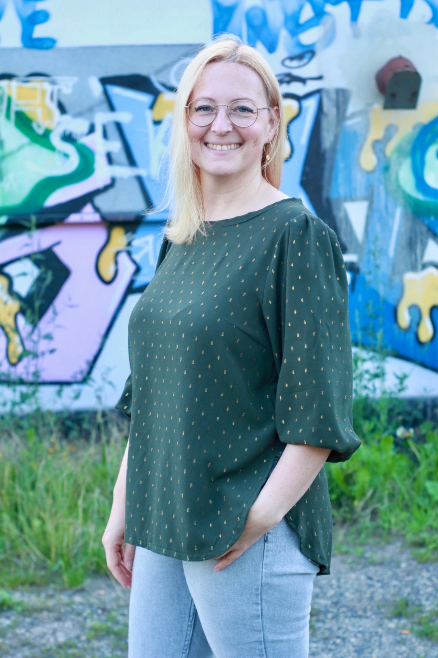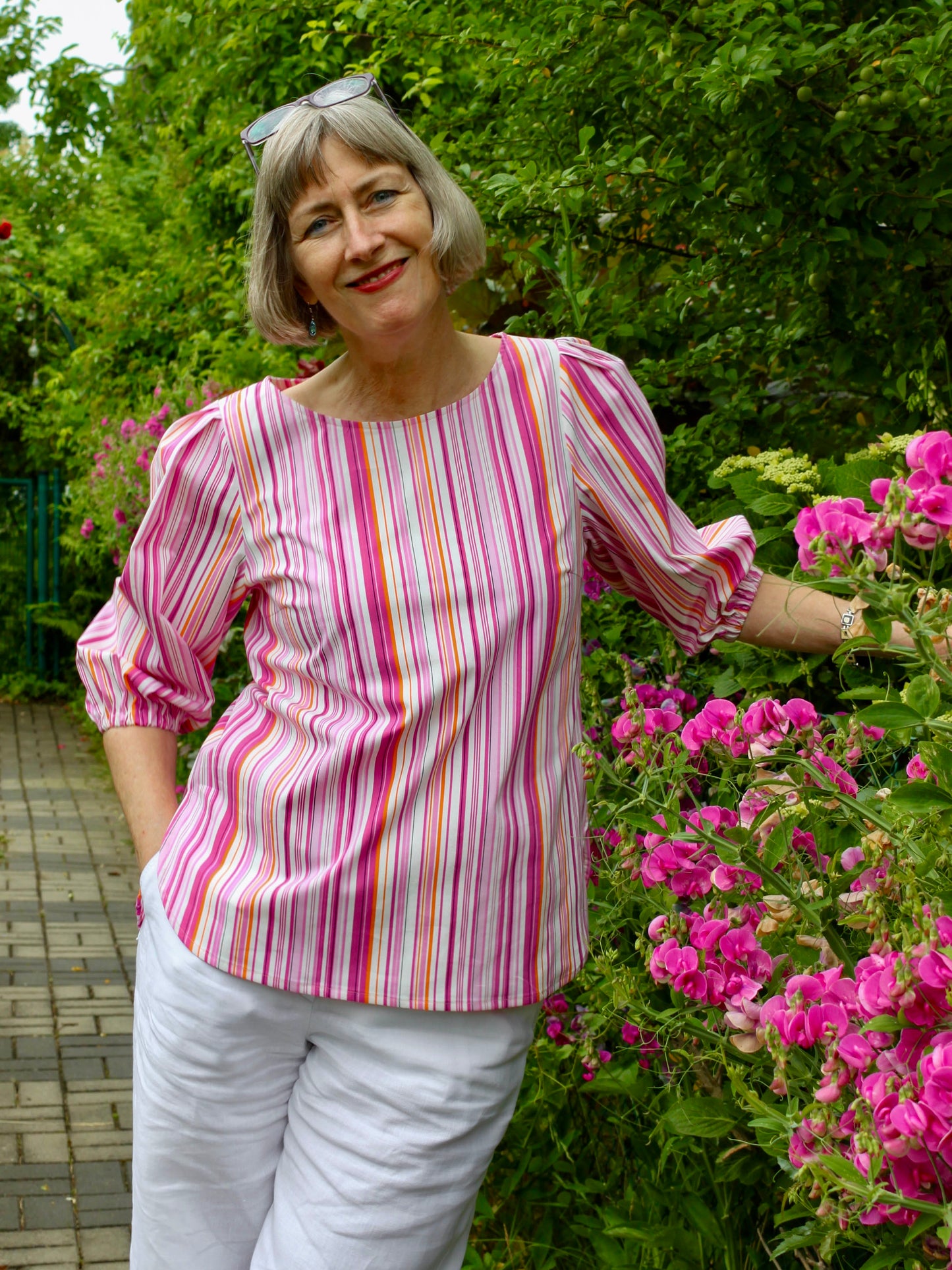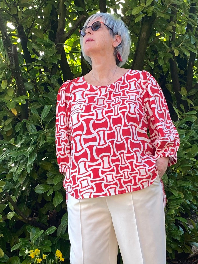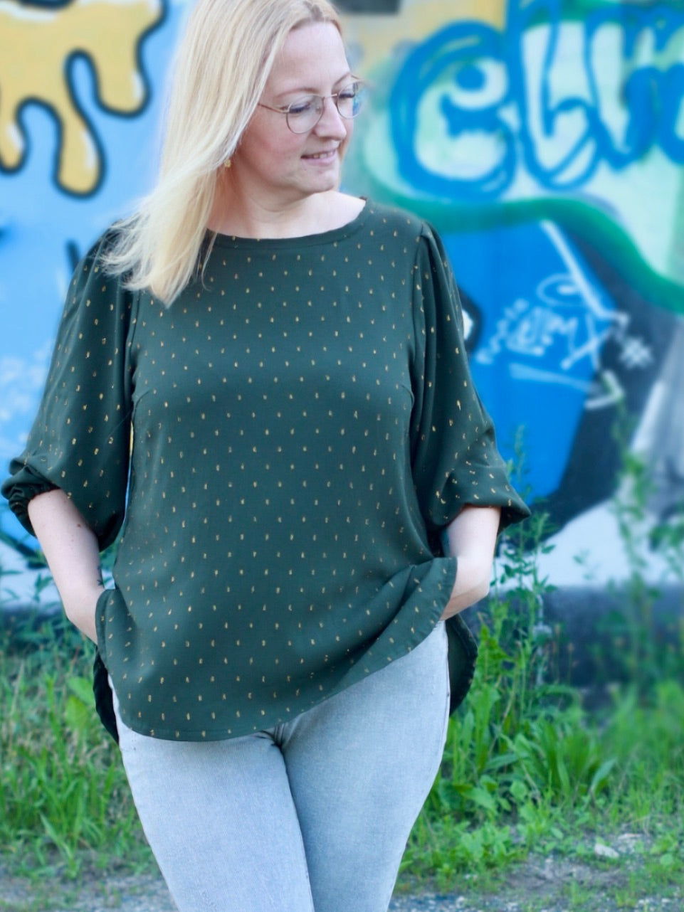Die Bluse Svenja ist ein sehr schönes Blusen-Schnittmuster. Dank der prima Anleitung ist das Nacharbeiten easy.