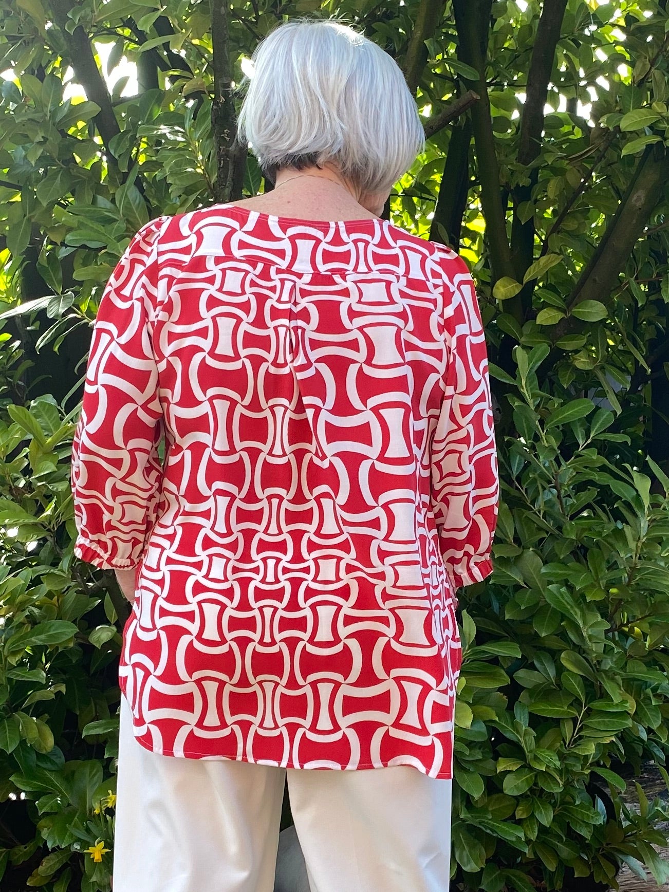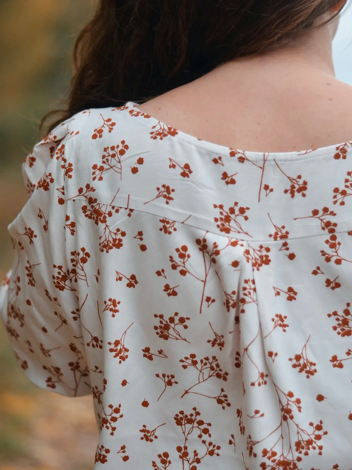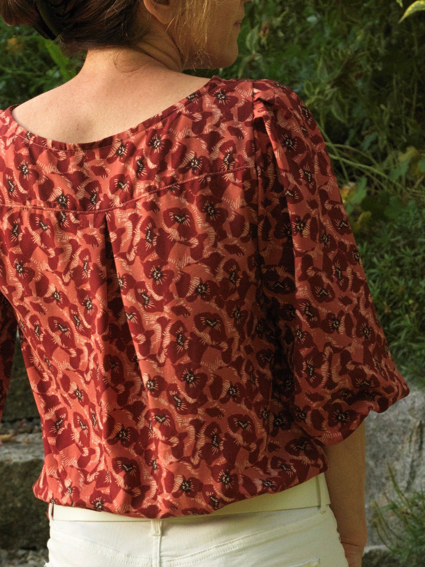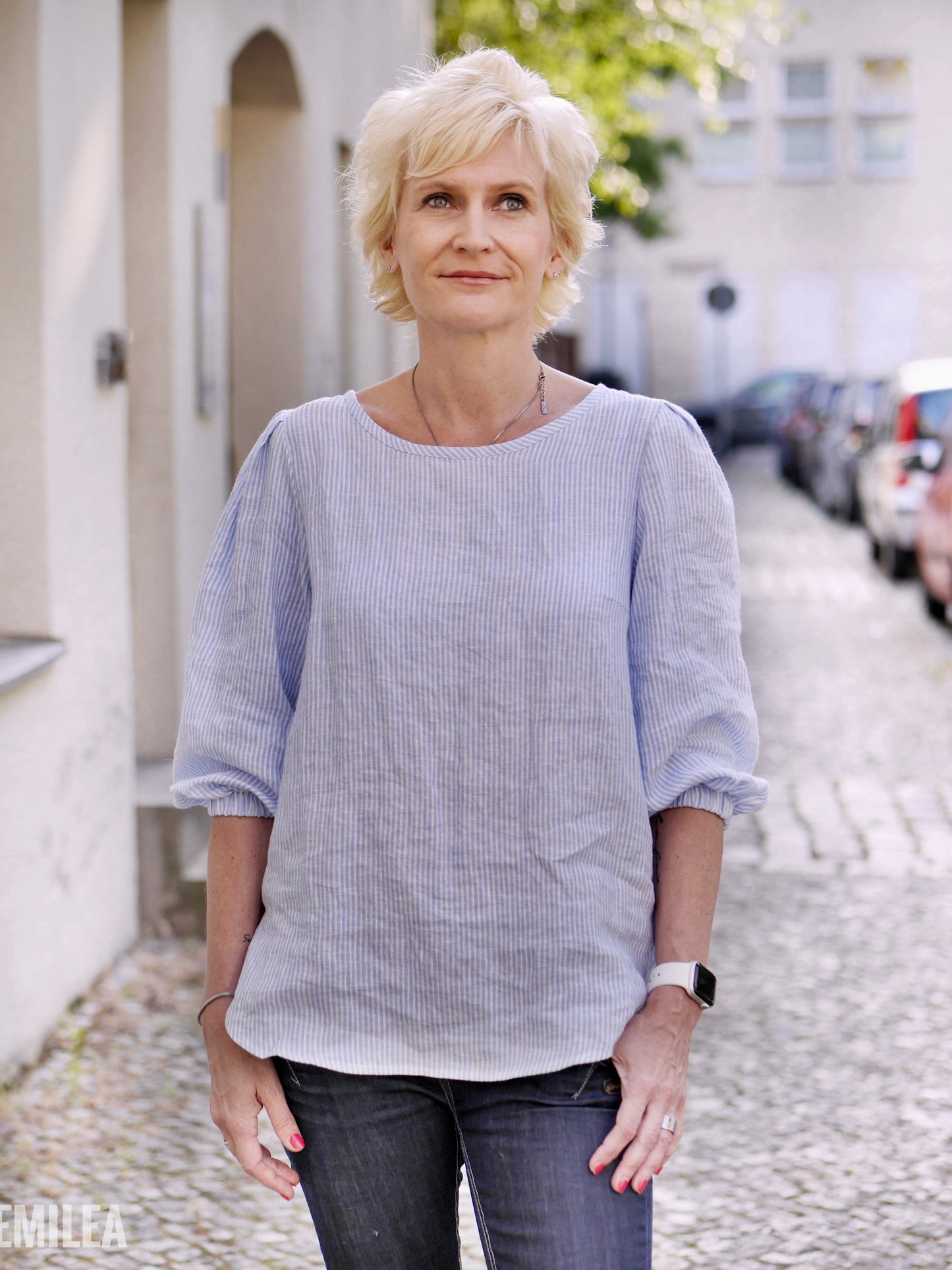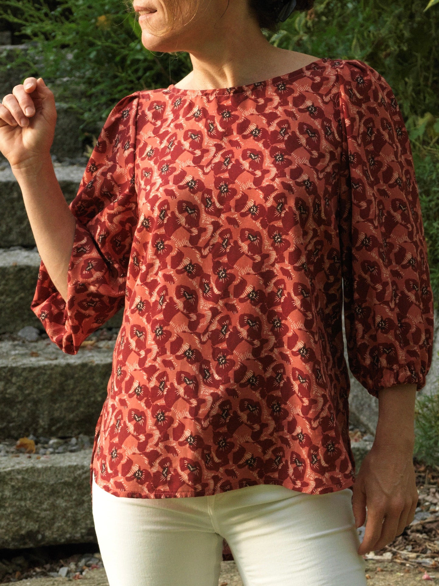 Die Bluse Svenja ist ein sehr schönes Blusen-Schnittmuster. Dank der prima Anleitung ist das Nacharbeiten easy.