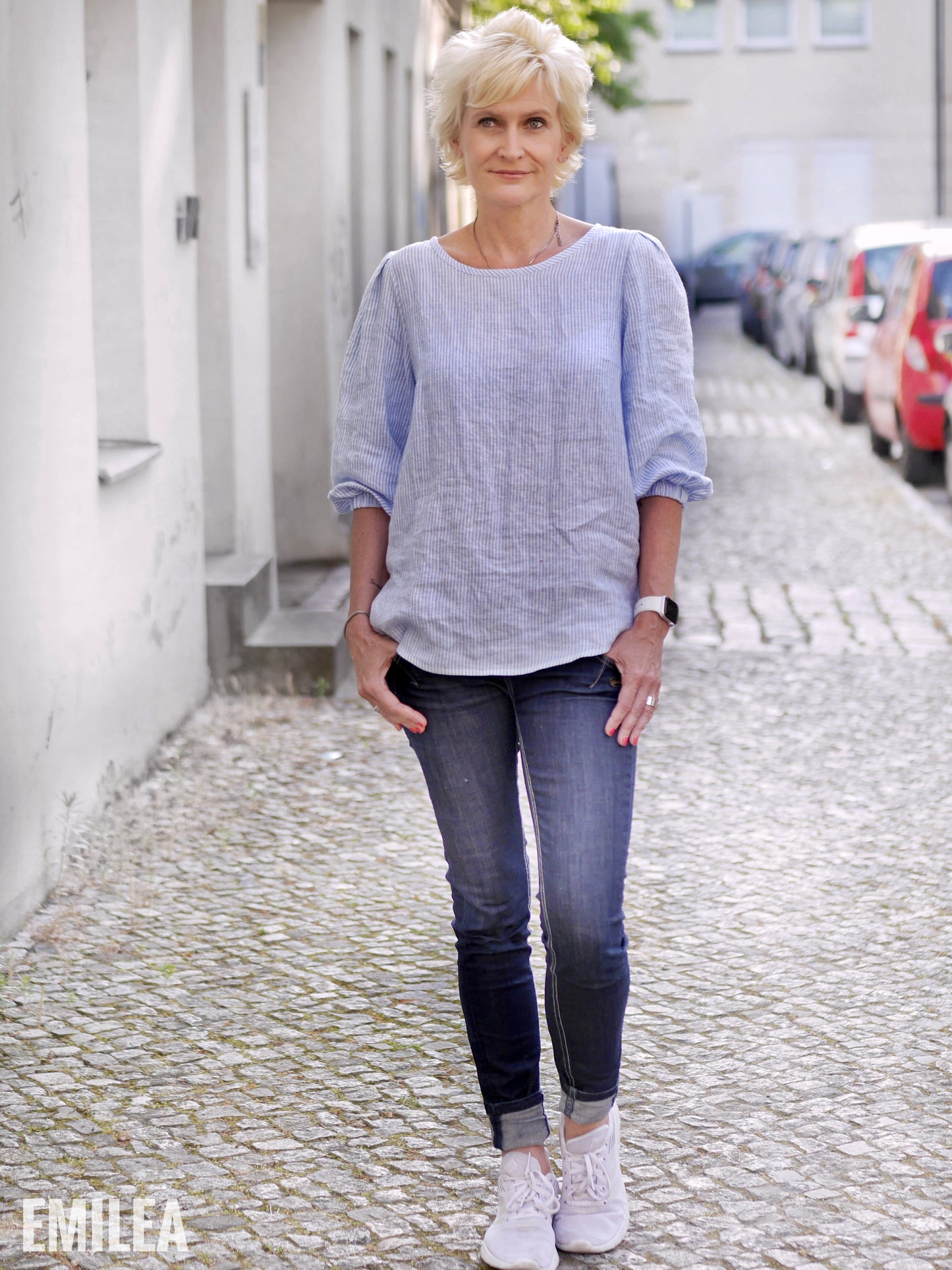 Psst, kleiner Tipp: Wenn du die Ärmel weglässt und die Armlöcher mit Schrägband versäuberst, hast du ein superschönes Sommer-Top. In unserer Fotogalerie findest du dafür viele Beispiele!