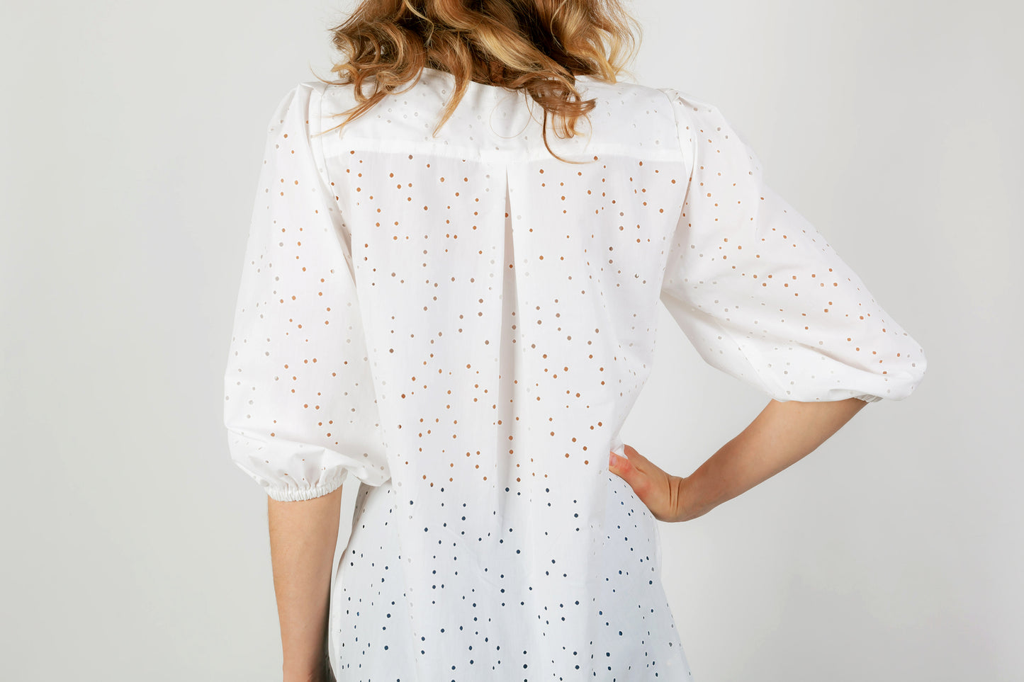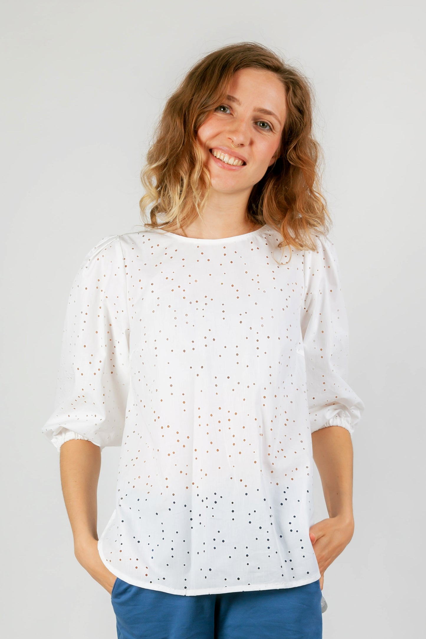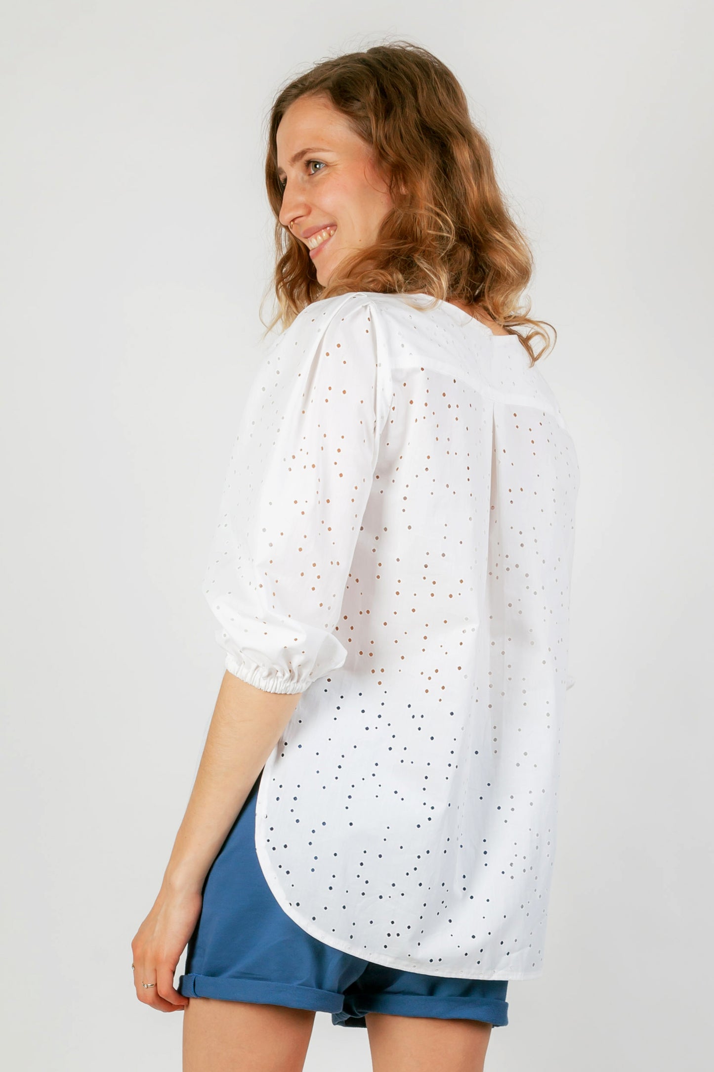Die lässige, leichte Bluse, mit den wunderschönen Ärmeln und einer spektakulären Schulterpartie! Mit dem großzügigen ovalen Ausschnitt und den fließenden Linien ist die Bluse Svenja der perfekte Begleiter für sonnige Tage und laue Abende.