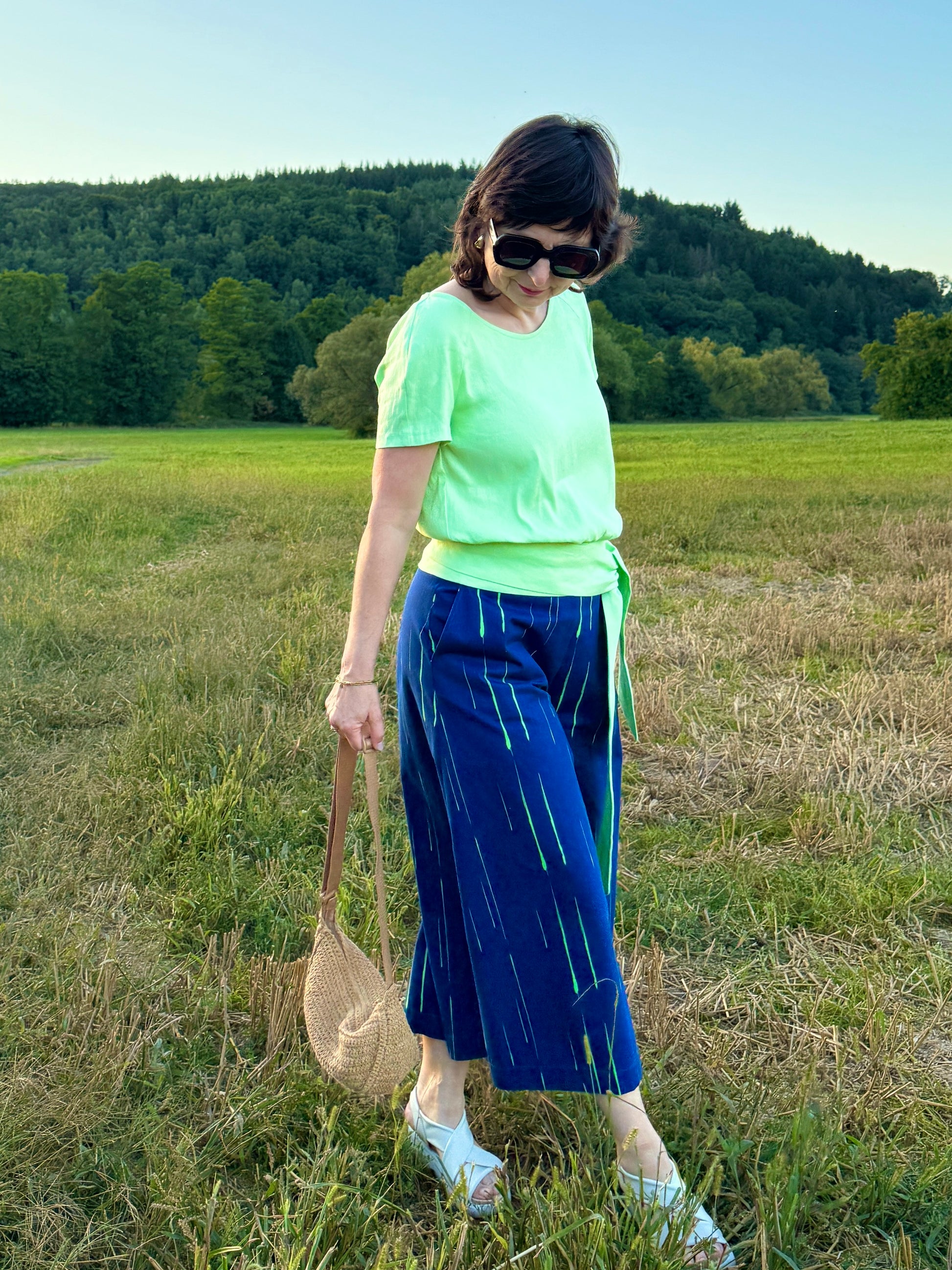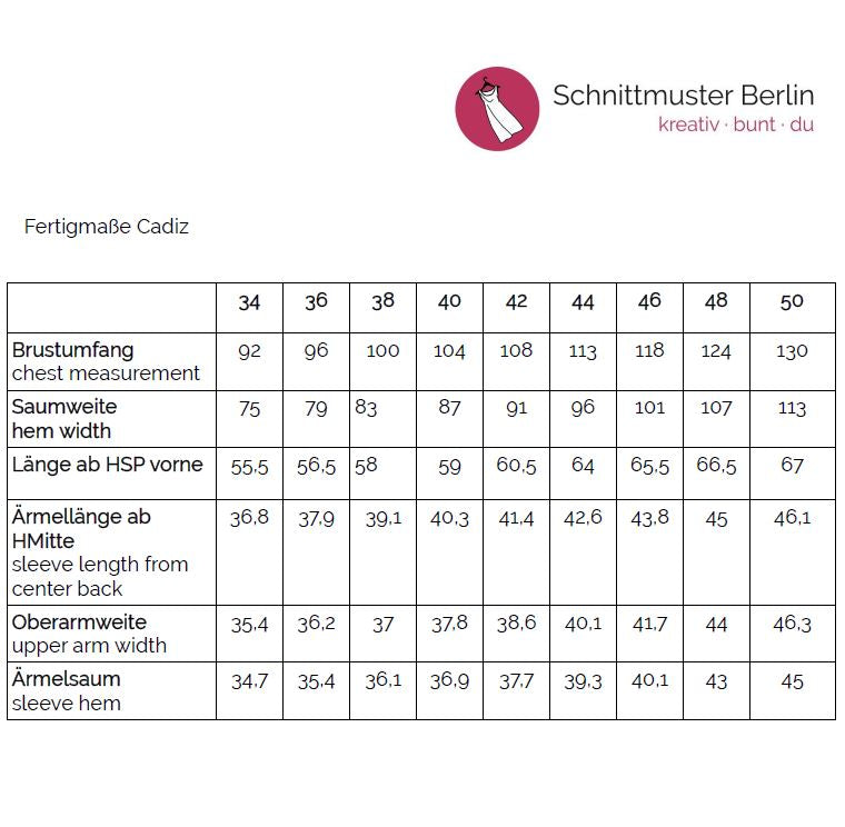 Das Wichtigste gleich vorneweg: Du kannst das Blusenshirt Cadiz aus allen Materialien fertigen, die einen weichen Fall haben, und damit ist es ein wirkliches Multitalent: Aus Seide wird es die perfekte Businessbluse, aus einem festeren Jersey ein Shirt und damit die perfekte Begleitung zur Jeans und aus einem leichten Strick zauberst du einen super-femininen Pulli. Und dazwischen ist alles möglich. Cadiz ist das Chamäleon unter unseren Schnittmustern.