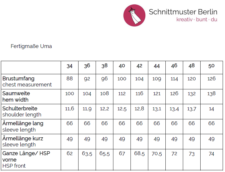 Habe jetzt die dritte Bluse Uma genäht, ein phantastisch gut sitzender Schnitt mit ausführlicher Nähanleitung. Für eine Variante habe ich den Ärmel der Bluse Hanifa verwendet, damit wird die Bluse Uma noch vielseitiger, Eure Schnittmuster sind einfach spitze!