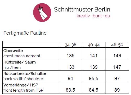 Our Pauline cardigan will delight you in the cool days of the year, which will definitely come again. The vest only consists of 4 seams and the processing of the hem edges, so it is super easy to sew and is really quick. Pauline not only offers casual width with a deep armhole, but also offers plenty of space for a thick sweater underneath. We wore our thin Lotta turtleneck sweater underneath during the shoot, so the oversized look comes into its own perfectly. There are always 3 sizes combined into one, i.e. 34-38, 40-44, 46-50, length in the middle back = 81-83 cm.