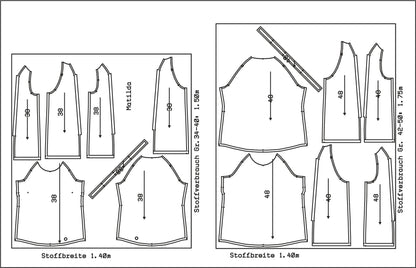 Mathilda is a very simple easy pattern. I made it without the slits in the sleeves. It falls wide so check your size on the pattern. Beginners pattern.