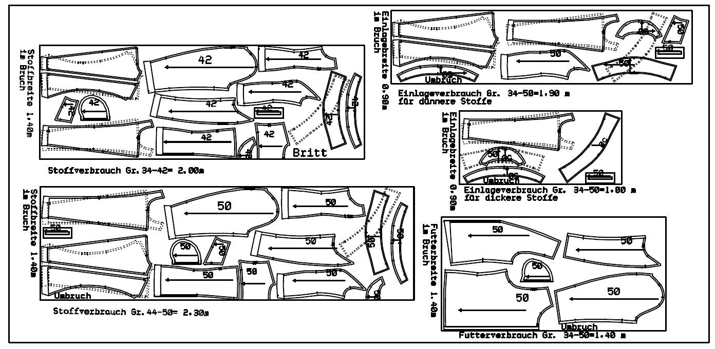Abwandlungen des Schnittmusters zu sehen, die nicht im Schnitt enthalten