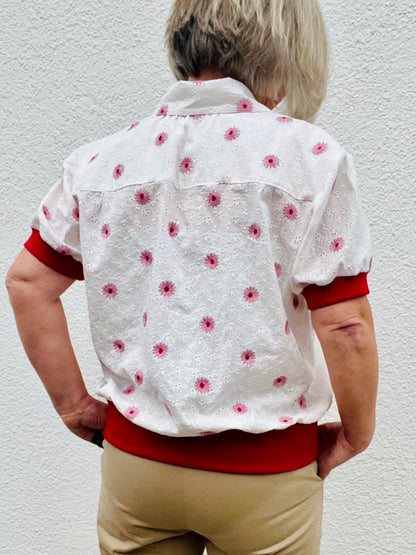 Die eingekräuselte Armkugel des Ärmels sorgt für ein bisschen Volumen und verleiht der Bluse eine jugendliche Frische und einen Hauch von Eleganz.