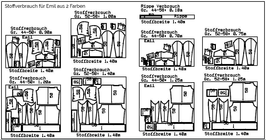 Abwandlungen des Schnittmusters zu sehen, die nicht im Schnitt enthalten