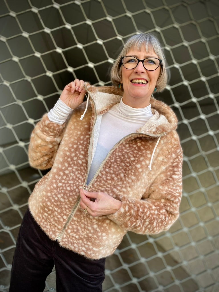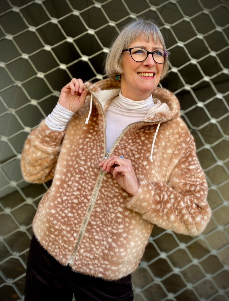 I sewed the Atlanta jacket from a metallic purple quilted fabric.