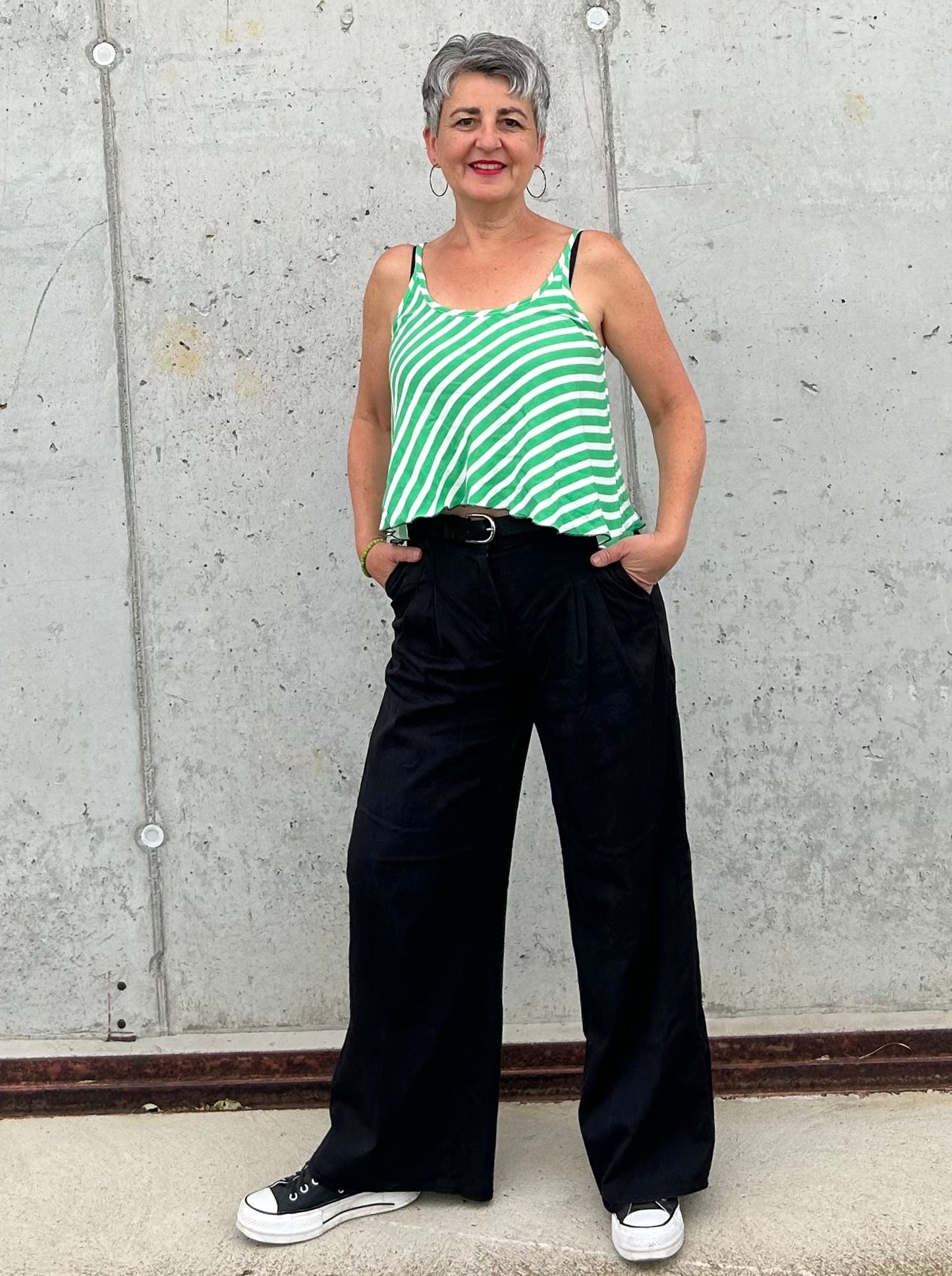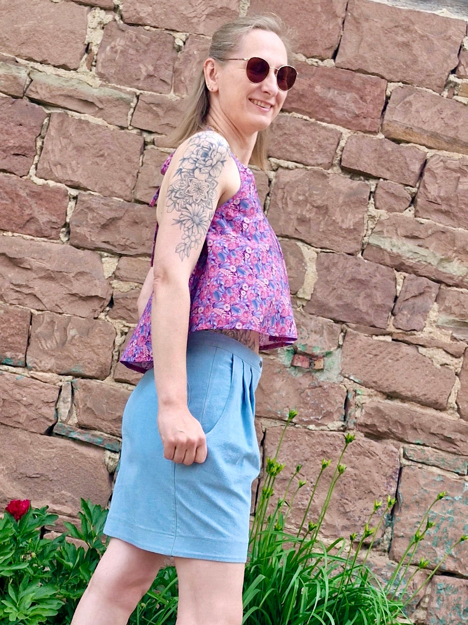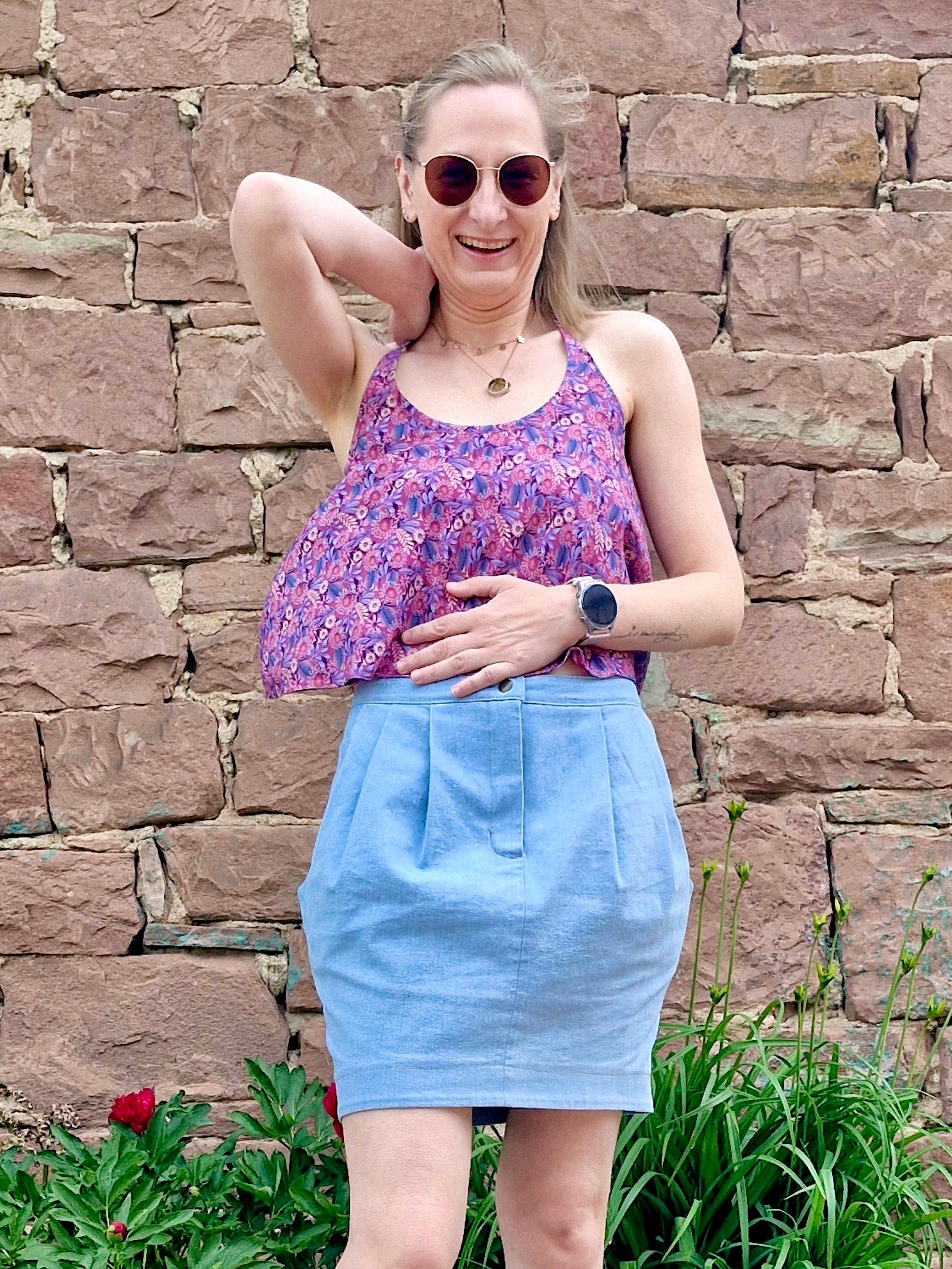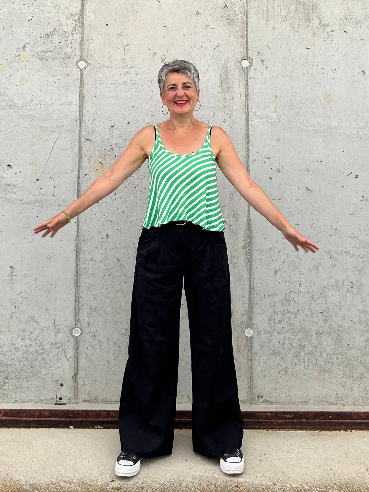 Keine Angst, du musst nur im Zuschnitt auf den eingezeichneten Fadenlauf achten. Die Verarbeitung ist ansonsten wie gewohnt.