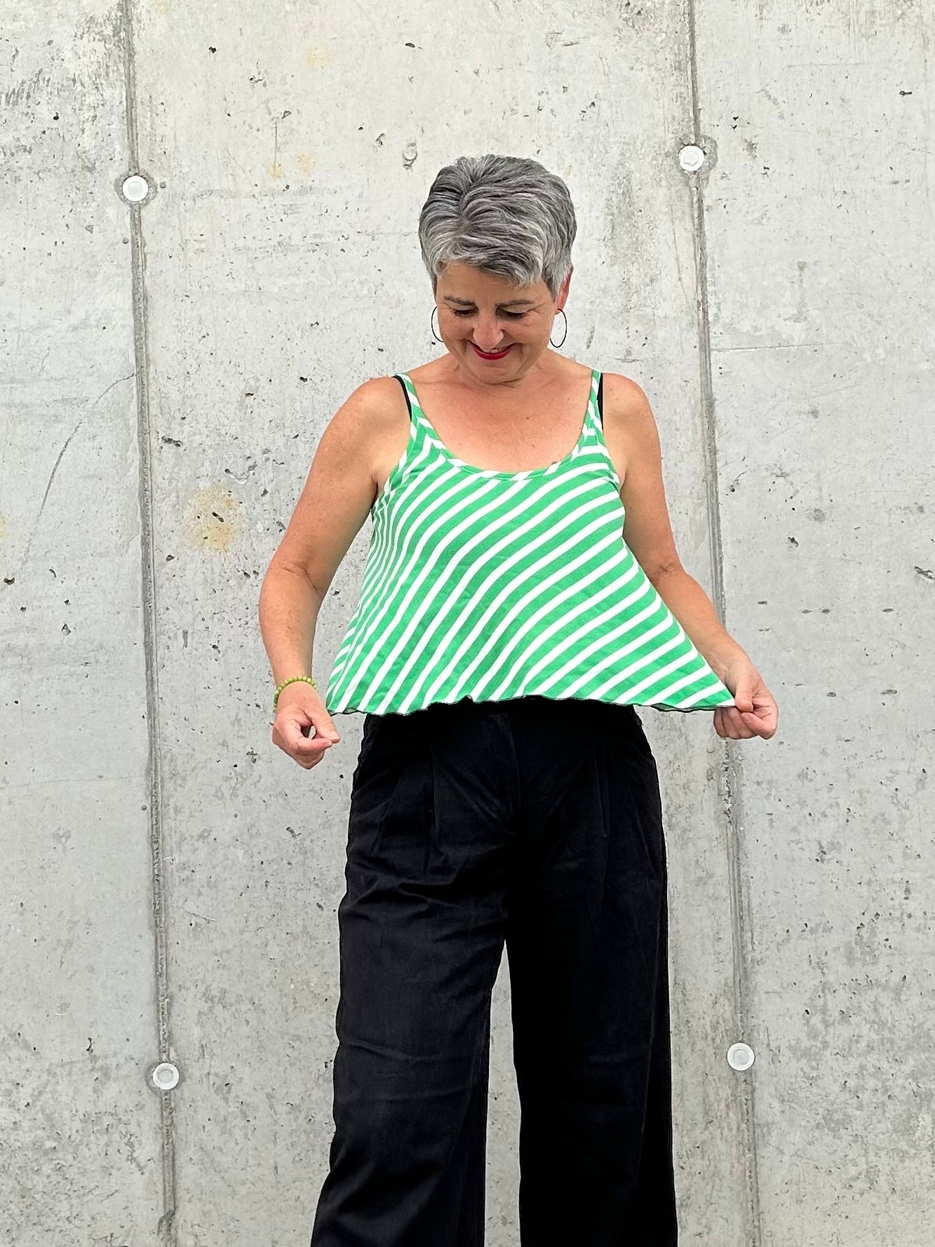 Der Stoff wird durch den Schrägschnitt ganz leicht dehnbar und flexibel.