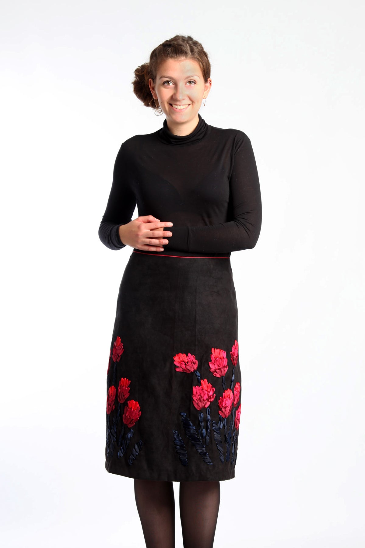 With Rebecka you can enter the skirt category, only the zipper is a little more challenging to sew. The skirt has no waistband, just a folded top edge, no pockets, but is lined. The flared hem means you don't need a slit. The narrow shape in the waist and hip area makes a beautiful figure, simply combine Rebecka with the Lotta sweater or the Ronja blouse.