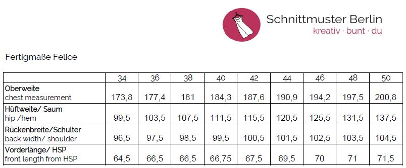The Felice shirt is a piece that is easy to sew, since it is only made of consists of four pattern parts. With oversized sleeves and Reglan seams, the blouse shirt is nice and casual. The yoke with pleats in the back provides a nice detail to the otherwise simple top. The top has a long cut and can therefore be worn loosely over tight pants . Length at center back = 70-74 cm
