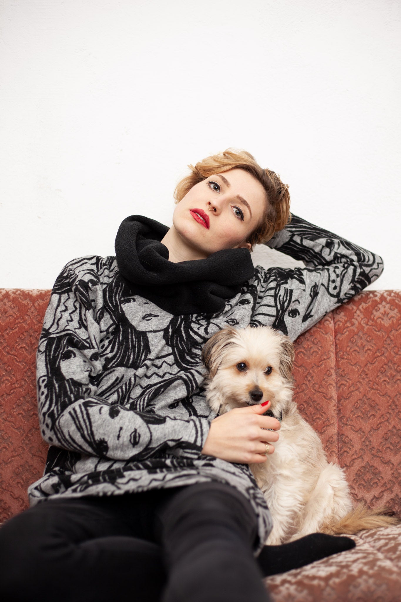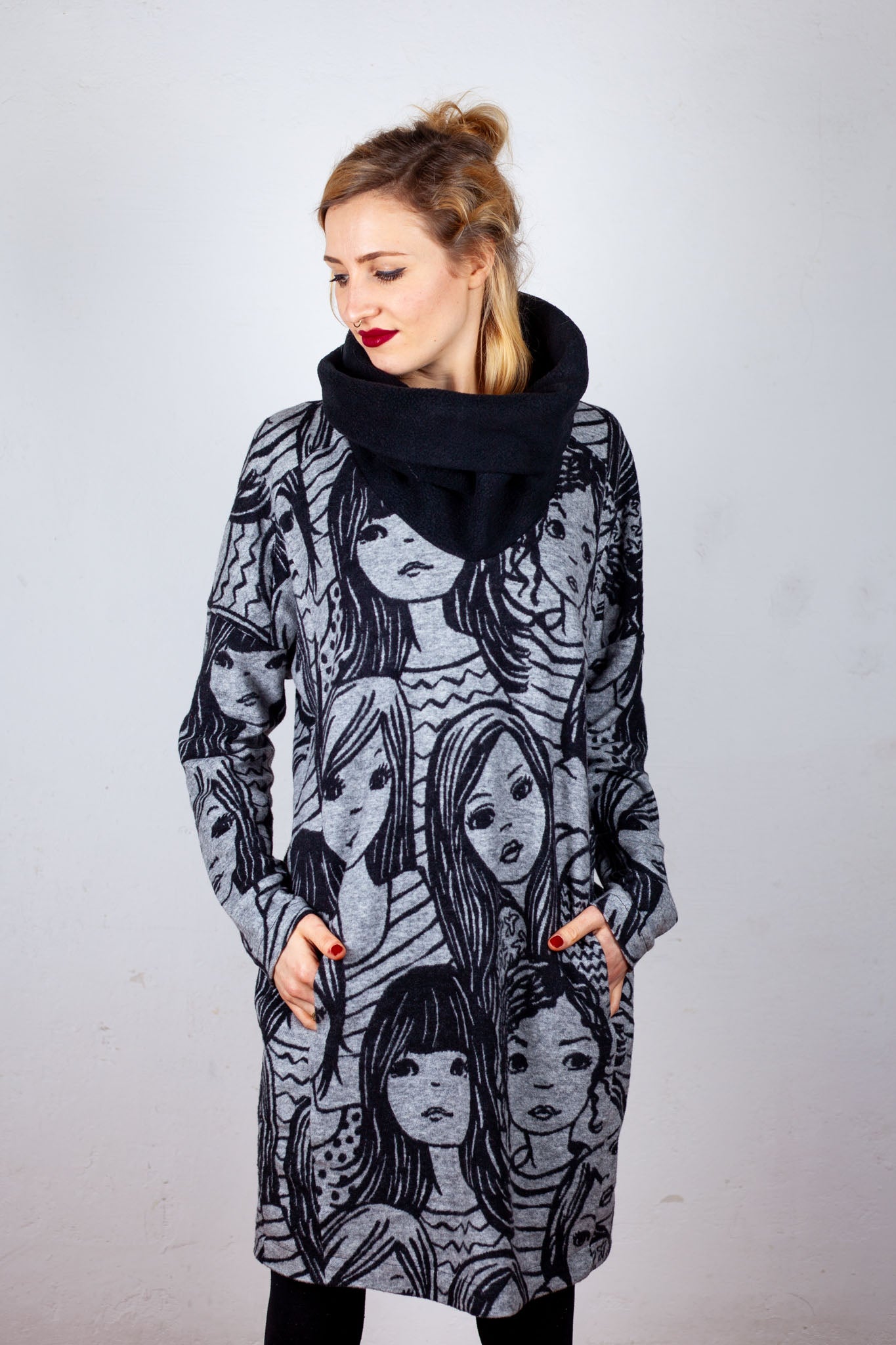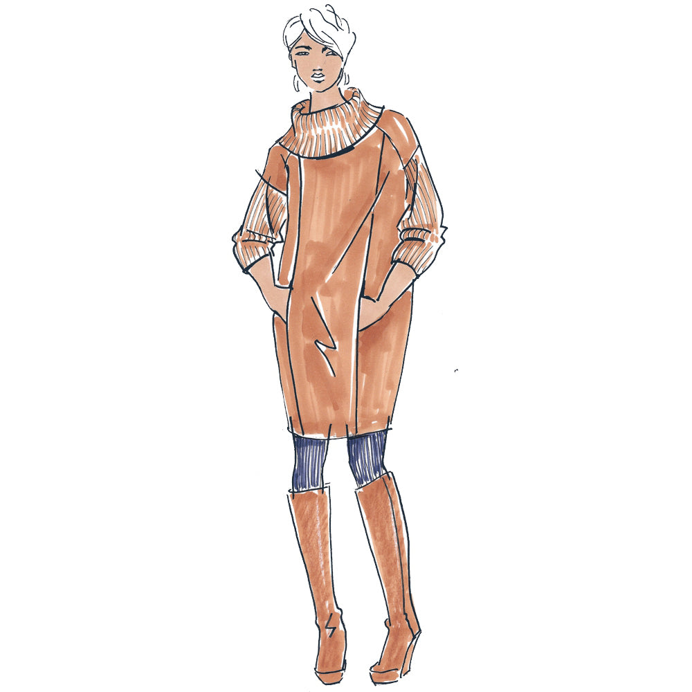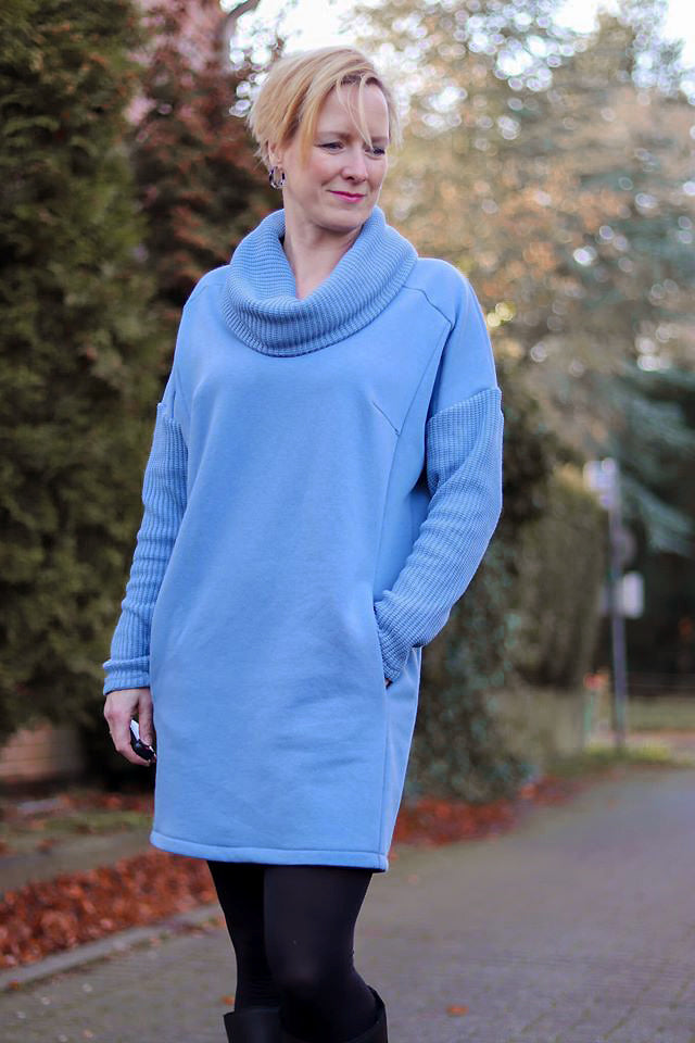 The Cemre sweater is definitely our winter favorite. Due to its length you can also wear it as a knitted dress . The lavish collar and the seam pockets in the front dividing seams complement this cozy and casual winter piece. In order to give beginners the opportunity to sew Cemre , there are illustrated sewing instructions in our blog.