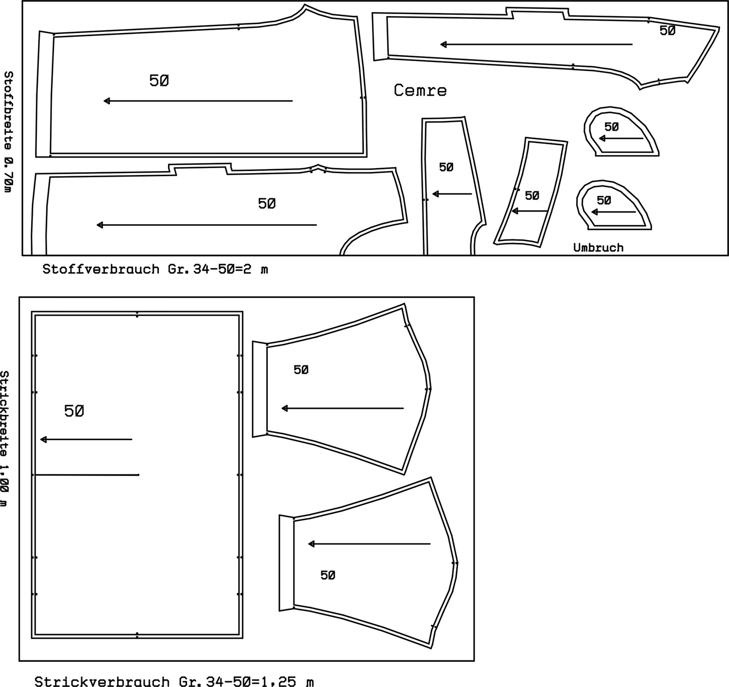 - Knit collar and sleeves 1.10 m 140 cm wide