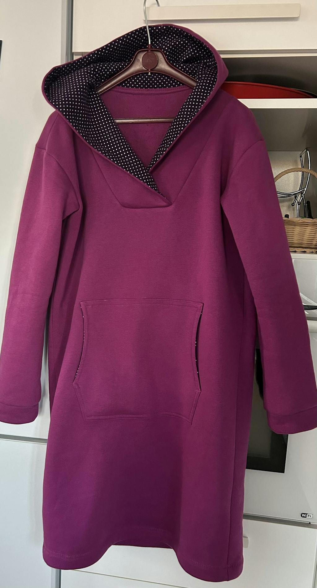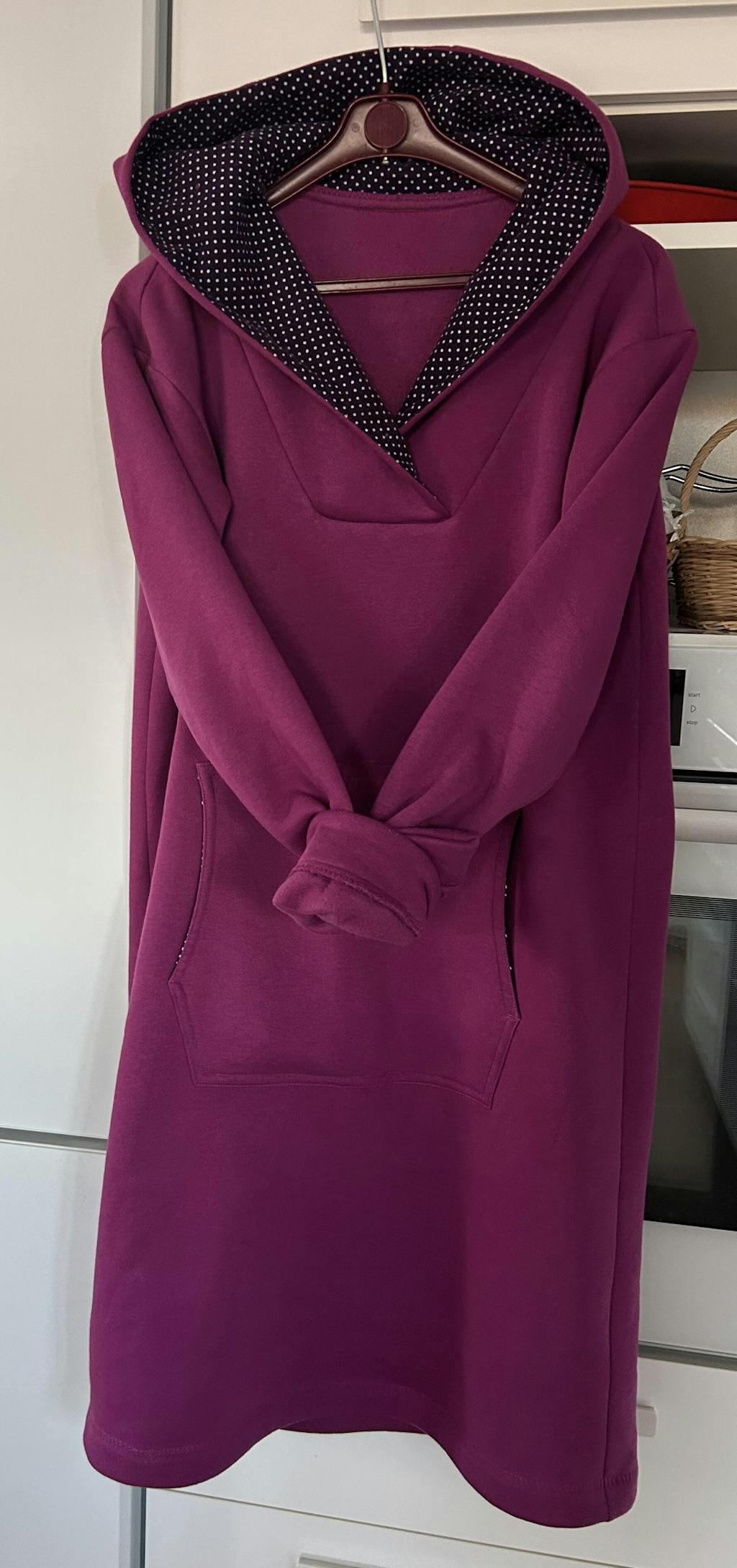 Mit dickem Wintersweat und einem Rest Feincord habe ich Pulli Dana zu einem sehr kuscheligen Hoodie-Kleid verwandelt. Was in der Anleitung klar und einfach aussah, hat mich mit dem dicken Stoff ganz schön herausgefordert (Ausschnitt!). Mit dem Ergebnis bin ich höchst zufrieden und sehe mal wieder: etwas Mut zur Verwirklichung eigener Ideen findet mit diesen Schnittmustern zu schönen Ergebnissen!