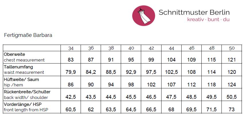 Vielen Dank zuerst an Schnittmuster Berlin. Bei Problemen wird schnell reagiert und geantwortet. Zum Schnitt, auch wenn ich eigentlich nur eine Gr. 40 habe, nach der Maßtabelle dann doch eine Gr. 42 zuschneiden muss, passt alles super. Ich muss keine zusätzlichen Änderungen vornehmen. Angenehm ist auch, dass die Nahtzugabe bereits in den Schnitten enthalten ist.